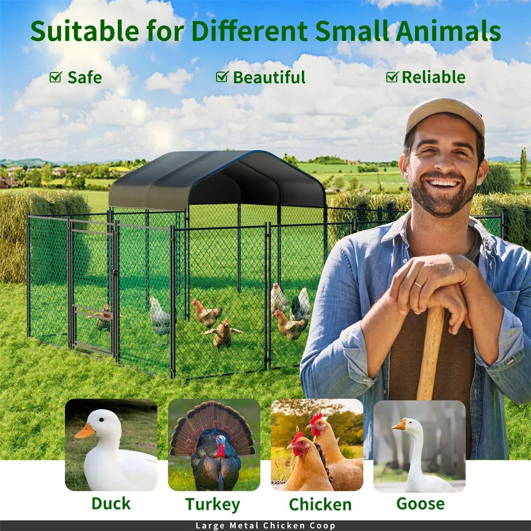 For keepers wanting a more substantial structure with a covered, walk-in run - particularly useful for those using a hybrid approach where the run serves as the birds' base between supervised free-range sessions - the large outdoor metal chicken coop with walk-in covered run is a well-built option designed for year-round UK use.